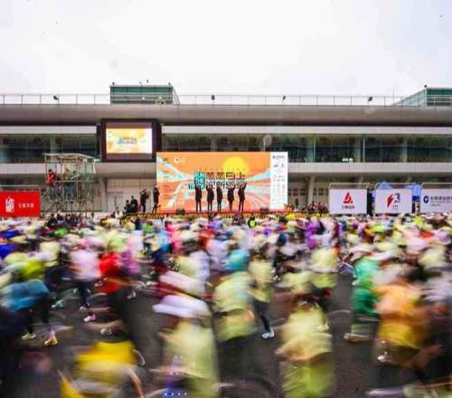 而这一场跑赛,也并未止步于跑道。除了完善细致的跑者服务,一场文体商旅展融合联动的盛会,也在元旦假期之际制造了不一般的热度。