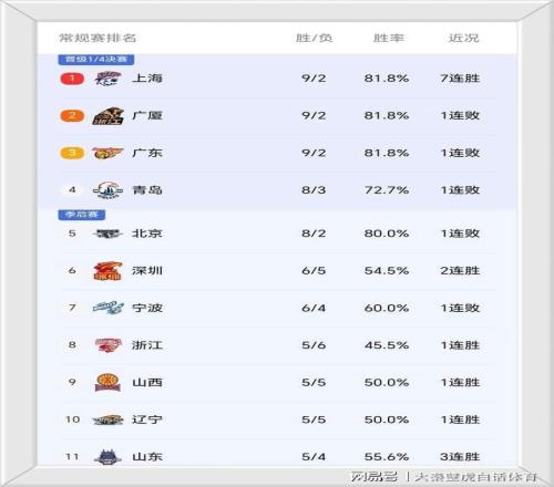 ③、青岛队主场落败,8胜3负仍然排名第4位,到身后的北京队只要下轮获胜,有机会直接冲上榜首。